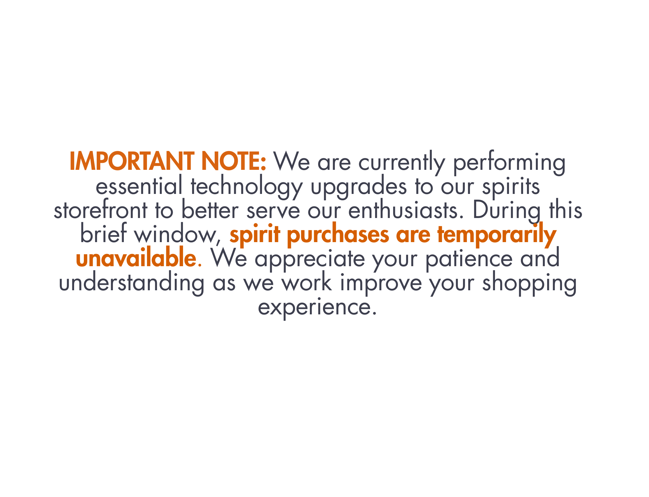 At this time, spirits are only legally permitted to be shipped to Kentucky, Nebraska, New Hampshire, North Dakota and Washington D.C.